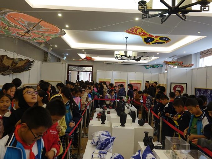开幕式结束后,与会的领导师生参观了作品展。“海州地区民间美术作品展”至今已成功举办五届。本次展览选取了包括黑陶、东海版画、剪纸、风筝、扎染等多种连云港民间传统技艺,80余件极具本地特色的民间美术作品。展览旨在弘扬与传承连云港地区深厚的传统艺术文化,着力打造本地文化特色和人文风貌希望以此激发广大师生热爱本土文化,培养学生良好的艺术审美素养,推动连云港地方传统文化艺术的创新与发展。活动中,连云港市艺术研究所副所长、市非物质文化遗产保护中心副主任徐洪绕为同学们作了一场连云港地区非物质文化遗产的专题讲座。