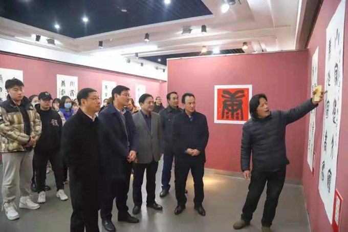 12月22日下午,由我校与连云港市文学艺术界联合会主办,美术学院与石室诗社承办的“致敬二零二零 为梦一路燃情——李敬伟 朱成安“小康颂”联墨展”在美术学院小展厅成功开展。展览邀请了连云港市政协副主席邸占山,市委宣传部副部长、市政府新闻办主任李超,市文联党组书记、主席王咏梅以及我市文艺协会部分领导和专家莅临,我校校党委书记杨浩以及美术学院、文学院领导师生出席了本次展览。