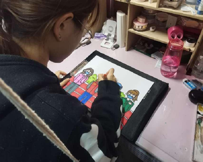 面对疫情,美术学院的学子们严格遵守疫情防控期间管理规定,积极投身志愿服务中,还默默地将自己的所见所闻、所思所感化作创作的热情,化为无声的关切,将抗击疫情的感人场面、动容之情、难忘时光以作品的形式鲜活生动地展示给大家,用艺术形式生动诠释抗疫精神,凝聚抗疫力量,传递战疫必胜的信念和决心,在疫情防控工作中贡献一份艺术力量。