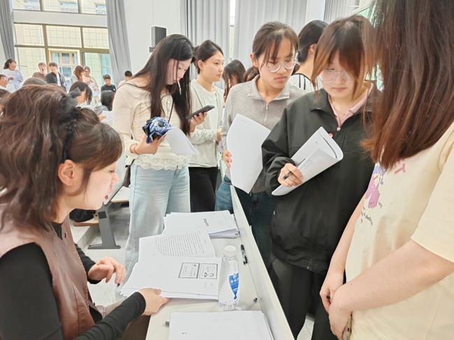 交流活动中,企业宣讲会与国庆节期间海上云台山景区服务岗前实训同步启动。结合上半年志愿服务中总结的景区人流疏导、安全保障、游客咨询等核心服务需求,企业培训讲师针对性开展岗位技能讲解,涵盖景区岗位职责细则、应急处理流程、服务礼仪规范等关键内容。同时,企业还特别结合美术学院学生专业特长,提出文创产品设计、景区周边绘画等创意类岗位需求,通过现场展示作品案例,激发学生参与热情,实现招聘需求与专业能力的精准对接。培训结束后,现场组织面试考核,同学们凭借扎实的服务认知与积极的求职态度展现出良好风貌,最终成功招募120余名学生参与服务,所有录用学生签署实践服务协议,为国庆节期间景区保障注入青春力量。