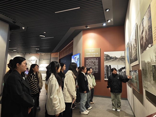 在连云港市革命纪念馆,入党积极分子们在讲解员引导下,依次参观五四运动时期、土地革命时期、抗日战争时期等主题展厅。馆内陈列珍贵实物、历史图片,辅以复原景观与3D影像,生动再现了“连云港保卫战”“115师在连云港”“讨伐郝鹏举”等重要事件,在触摸历史中深化对党的初心使命的理解。在“陇海公寓”复原场景前,大家驻足凝视这处曾为老一辈无产阶级革命家从事秘密斗争的基地,深切感悟革命先辈在艰难环境中坚守信仰的赤诚之心。
