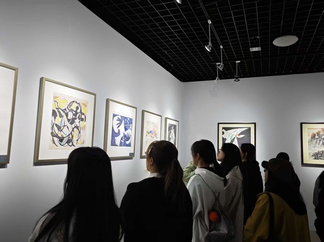 随后,研学队伍来到彦涵美术馆,重点参观“永远的丰碑——彦涵版画艺术作品展”。作为从连云港走出的革命版画家,彦涵的《豆选》《冬学》《诉苦》等五件代表作均入选江苏省革命文物名录。在木刻《豆选》前,讲解员详细介绍作品背后农民用投豆方式行使民主权利的历史场景,让学员们直观感受人民民主意识的觉醒;《慰问》中雁翎队伤员与群众间的鱼水深情,通过刀锋力度与黑白对比跃然纸上,使美术专业学子更深刻体会到“艺术为人民”的创作真谛。现场,学员们结合专业知识交流创作感悟,纷纷表示革命艺术作品既是历史见证,更是党性教育的生动教材。