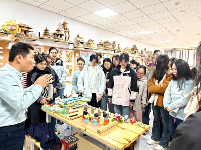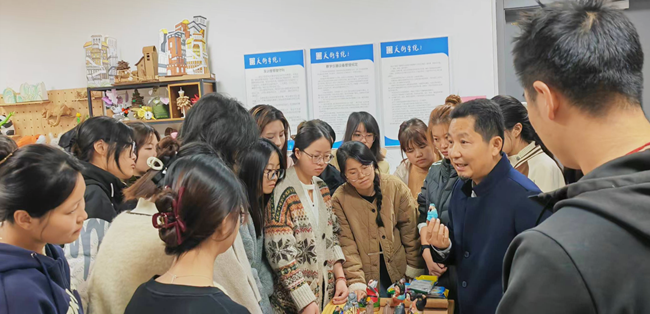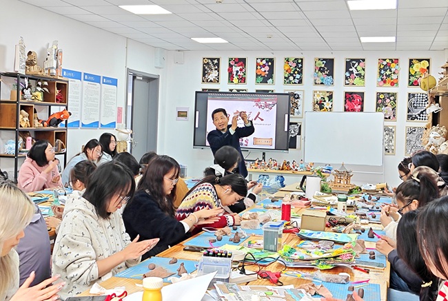 为切实强化2026届美术教育专业毕业生的就业核心竞争力,深化“以技育人、以能促业”的育人理念,11月13日、14日,美术学院特邀行业专家开展技能提升专项活动。活动由学院党总支书记刘怀英全程主持,南京泥人非物质文化遗产传承人朱建东、南京特殊教育师范学院教授郎家丽分别带来泥人制作与扎染技艺的讲座分享及实践指导,为毕业生搭建了“对接行业需求、锤炼专业技能”的优质平台。