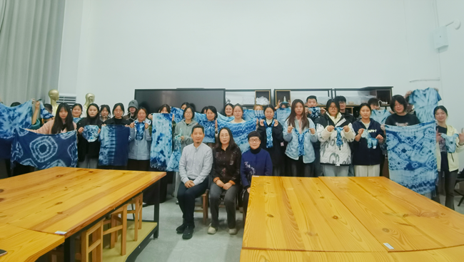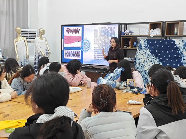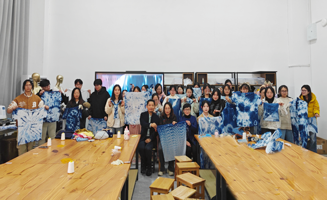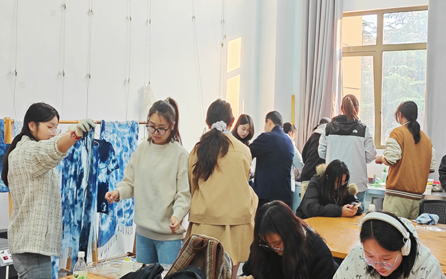 11月14日,南京特殊教育师范学院郎家丽教授带来扎染技艺的专题讲座与实践指导。郎教授作为高级工艺美术师,深耕植物染扎染技艺教学与研究多年,主持多项国家级、省级科研项目,在CSSCI、北大核心等期刊发表多篇学术论文。讲座中,她结合自身科研与教学经验,详细讲解了扎染的历史渊源、染料选择、捆扎技法及图案设计逻辑,并针对毕业生关心的“扎染技能在中小学美术教学中的应用”“文创产品开发与市场对接”等就业相关问题进行了深入解答。实践环节中,毕业生们分组尝试不同的捆扎方式,经过染色、固色、拆线等步骤,成功制作出独具个性的围巾、短袖、动物造型挂饰等扎染成品,在提升动手能力的同时,拓宽了对美术教育专业就业方向的认知。