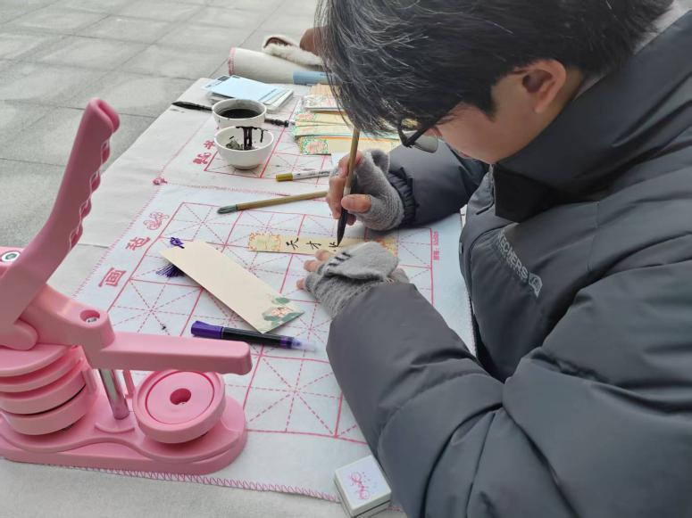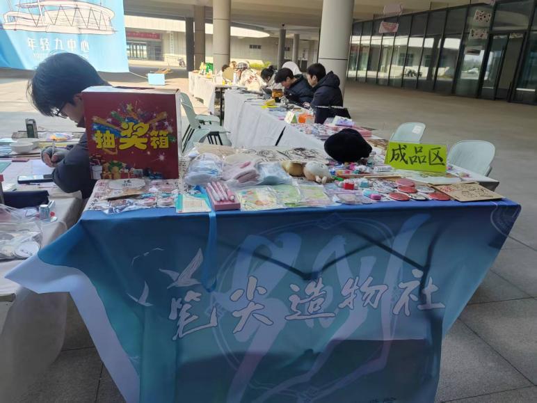 活动现场,我院“笔尖造物社”学生创业摊位成为焦点。这支专注于手作体验与文化传承的年轻团队,以“书画生活化”为核心理念,将传统美术、书法元素通过现代设计转化为系列文创产品。从手绘书签、DIY文创袋到定制文具,每件商品都承载着文化内涵与实用功能。值得关注的是,这些作品并非单纯的展示品,而是面向市场销售的创业实践。其创新商业模式与产品生命力获得了市场的直接验证,更吸引了连云港市文旅投公司董事长的现场关注,当场预定了以西游主题设计的限量版文创勋章。这一订单不仅是对学生创业项目的商业背书,更标志着年轻创意正成为地方文旅IP开发的新兴力量。